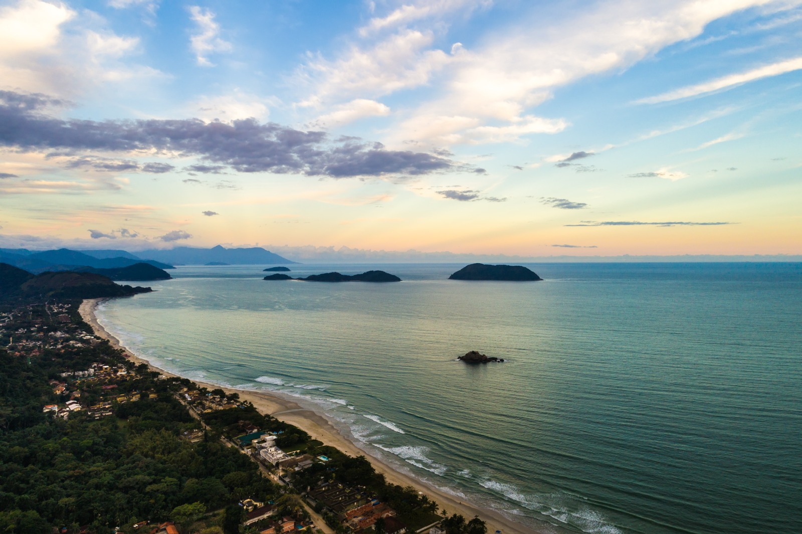 Juquehy, praia de águas cristalinas e areia fofa e branca. Normalmente calma tendo de plano de fundo a maravilhosa Mata Atlântica